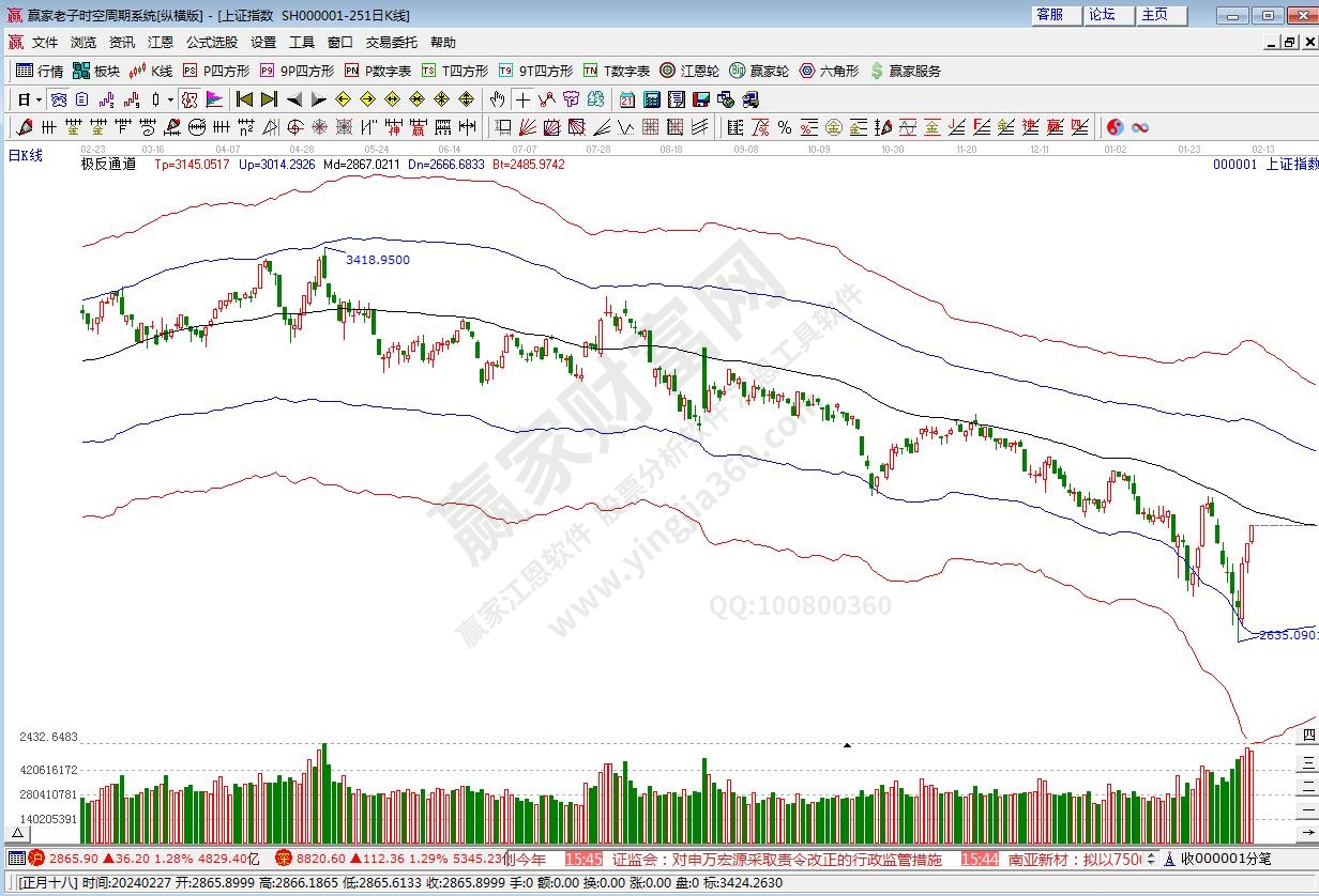 依据赢家江恩极反通道趋势工具展示:当前在赢家极反通道生命线和弱势通道线之间的弱势通道内运行,在弱势通道线获得支撑后展开上攻,当前即将到达生命线2896.34点压力位,根据工具信号和规则,买在支撑卖在压力。压力位下运行短期注意风险防控,未入场者耐心等待更好的支撑机会。