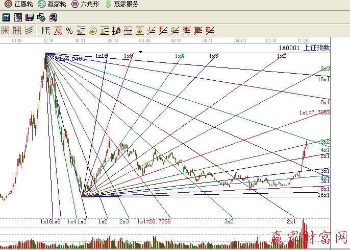 好的文字总是需要反复的揣摩,才能领悟更多的意义,文中渔夫老师将先长后短的理念结合江恩工具的实战运用,都做了很好的讲解,要将理论知识融会到实际操作中,借助专业的工具多画图多分析市场是必不可少的,渔夫老师研发的赢家江恩软件迄今已有15年之久,这里展示几个工具分析图,有兴趣的朋友可以联系服务人员免费下载体验—