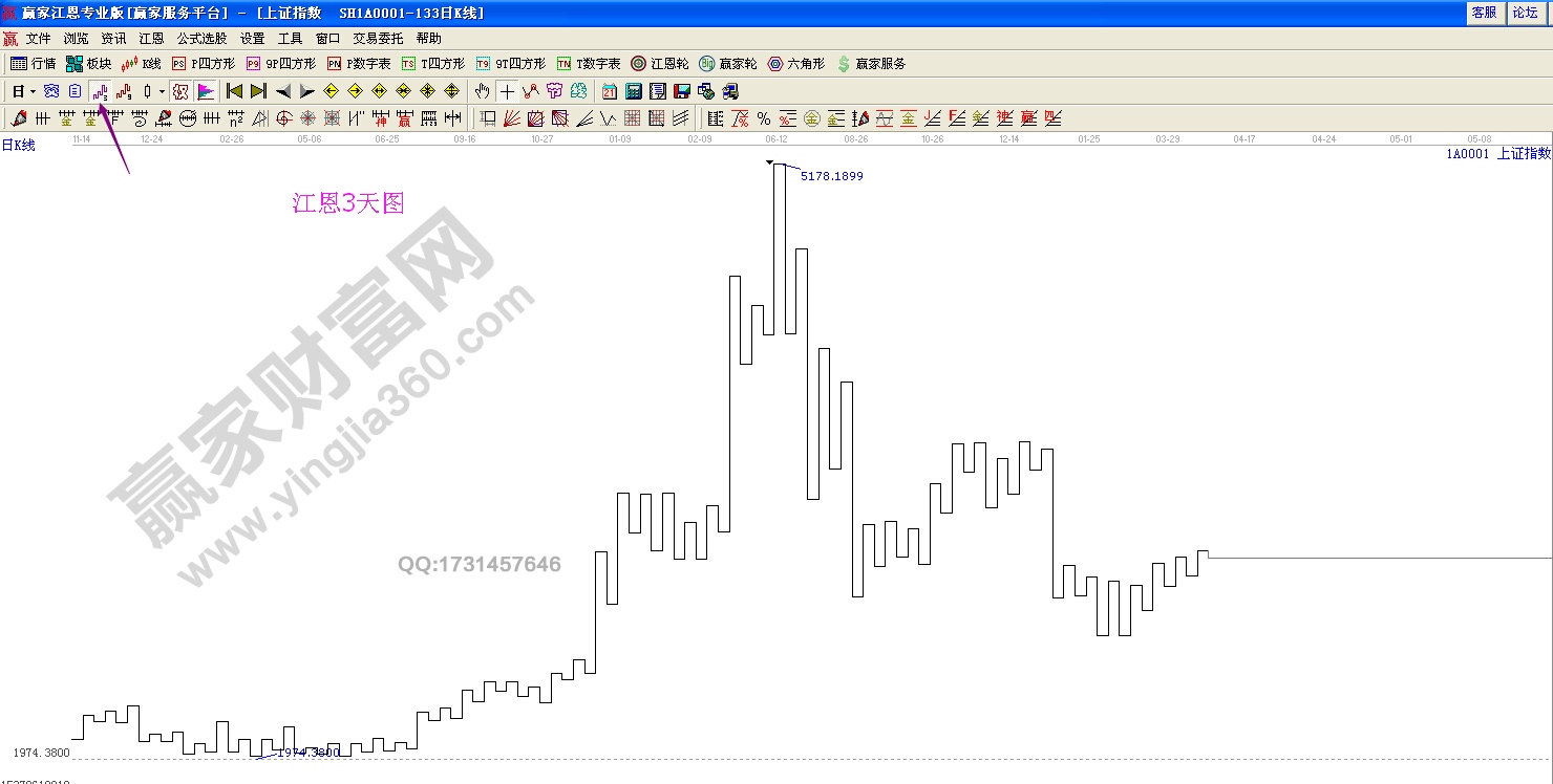 由于时间的重要性和时间序列的严格性,使得三天图不但容易理解,而且可以方便地应用在各种图形的k线中,这种方法在周线和月线中也同样适用。逢三则变,符合了一切变化的原理,抓住了变化的关键,就像打蛇要打七寸一样,是这一方法的精髓。