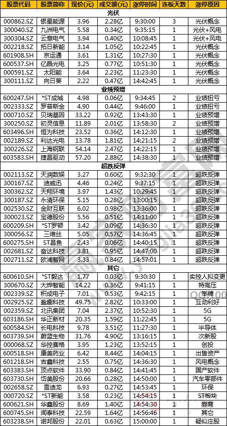 光伏、业绩预增、超跌反弹 封板效率:较高