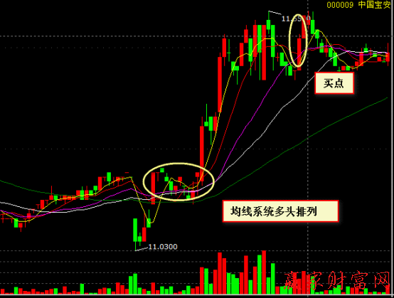 第二种 均线系统多头排列股价回调不破关键技术位买入法