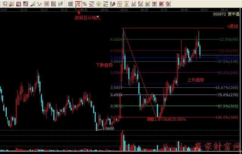 下面我们来讲述赢家江恩中的运用波段百分比分析个股,如下图: