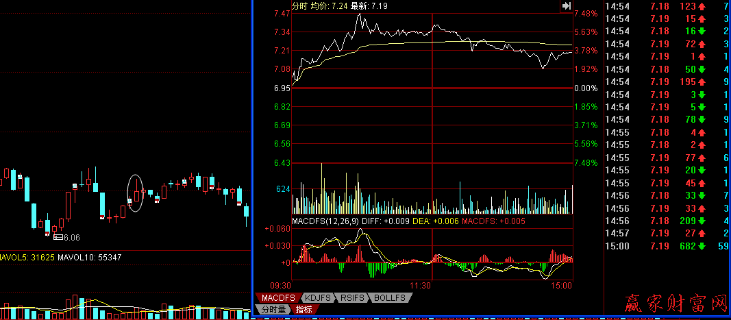 如上图所示是桐君阁(000591)的日K线图和分时走势图。在2010年3月31日,该股向上试盘,发现买盘很多,并且抛盘很少,于是就开始不断向上拉升股价。