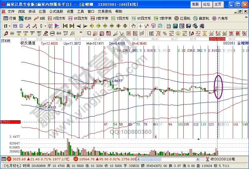上图就是趋势工具极反通道的运用,金螳螂该股在8月8日的时候放量突破生命线,9日收十字星,股价处在生命线上方,所以投资者可以进行逢低买入,极反通道的核心就是:支撑站稳是买点,压力过不去就是买点,站稳一线看高一线,一下跌破看低一线,一点过不去回调一线。当然不仅仅只有这一个趋势工具,还有乾坤K线等。