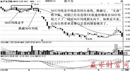 4.在应用30日均线做市场分析时,要密切注意10日、20日均线的变化,因为10日、20日均线的变化最终要导致30日均线的方向改变。