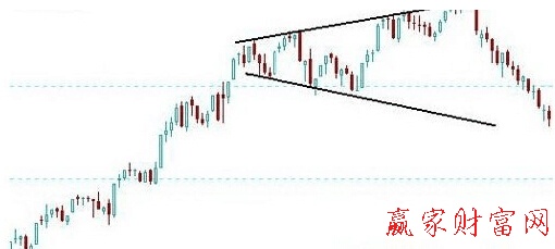 当股价从第三个高点回跌,其回落的低点较前一个低点为低时,可以假设形态的成立。和头肩顶一样喇叭形属