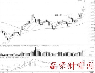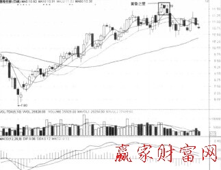 比如徐工机械(000425),在2010年9月14日前后出现黄昏之星的组合,成文量并不大,此时庄家并没有出货,而是故意制造陷阱诱惑投资者,此后股票虽有短暂下跌,随即又开始新一轮的上涨。
