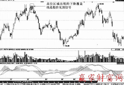 下降覆盖线组合形态的出现,在技术上是一种见顶信号,股价日后下挫的可能性很大,因此投资者见此图形应及时止损离场。