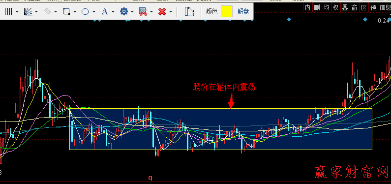 那么这个时候利用MACD来判断该股是不是处于底部首先我们来看股价在箱体里,MACD指标的变化从图中可以看出该股在箱体内运动时,MACD指标在数值为负值之下,形成了四次金叉而且金叉的位置一次比一次高,什么该股的底部位置在抬高,那么更可以断定这个股是不是在底部区间,然后我们在结合箱体间量能的变化,可以看出,该股在在箱体类运动时上涨都是放量,下跌回调都是无量。