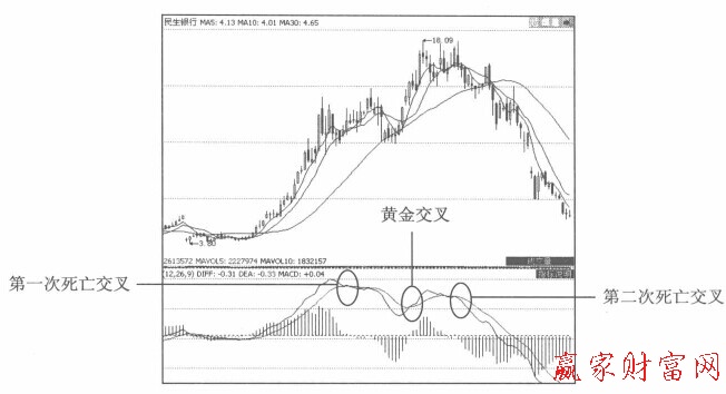 2.民生银行(600016)的周K线图及周线MACD如图2所示。