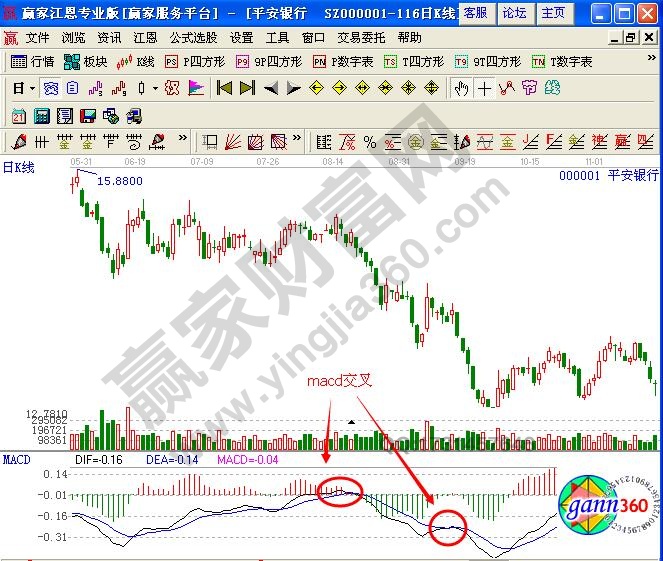 交叉:这是MACD线基本应用规则,如果MACD线下跌到信号线((9日均线)下方时,作为卖出时间段,股民可以伺机卖出,如果MACD线上穿到信号线上方时,作为买入时间段,在国内股票软件中,MACD线和9日均线的差已经用直方图表示,当MACD线大于9日均线时,直方体为从垂直向下变为垂直向上,这之间的变化点,就是买入时机:反之为卖出时机。(文章来自赢家财富网http://www.yingjia360.com)