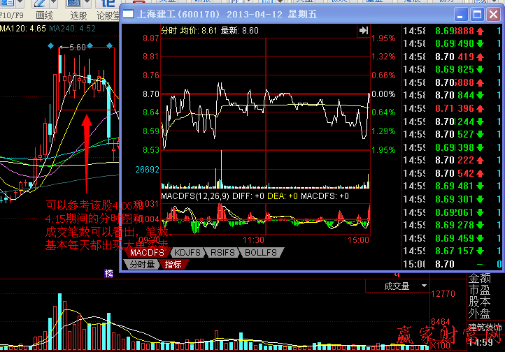 亦可采用平均量指标研判,平均量就是每笔交易的平均成交量,它是用来测知大户是否进场买卖股票的有效方法,从平均量的变动情形将可以分析股价行情的短期变化,其研判原则如下:(1)平均量=成交量÷笔数。(2)平均量增大表示有大额的买卖,平均量减小表示参加买卖的多是小额散户。(3)在下跌行情中,平均量逐渐增大,显示有大户买进,股价可能于近日止跌。(4)在上涨行情中,平均量逐渐增大,显示有大户出货股价可能于近日止涨下跌。(5)在上海或下跌行情中,平均量没有显著的变化,表示行情仍将继续一段时期。(6)在一段大行情的终了,进入盘局时,平均量很小且无大变化,则表示大户正在观望 交笔数分析较不适用于短线操作。