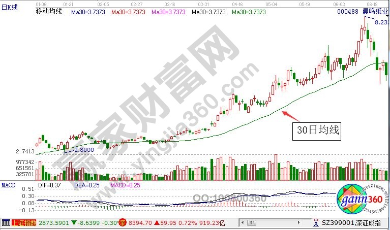 《起涨点买入八法》是有三大要素的,它们就是:K线、均线、成交量。将这三大要素综合起来分析,投资者就能够做到十拿九稳。如果说起涨点买入法要有个核心的话,那么它的核心就是30日均线。