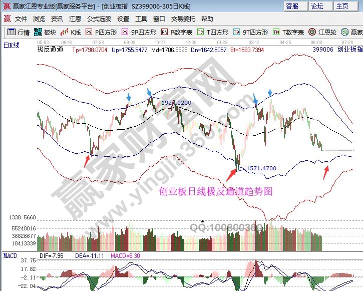 创业板自日线失守生命线后一路震荡下行,中间在黄金分割0.618(1703点)震荡徘徊几天后,弱反力度不强继续向下,按其极反通道规则,失守一线看低一线,弱势下轨线1630附近或将产生有力度的抵抗。