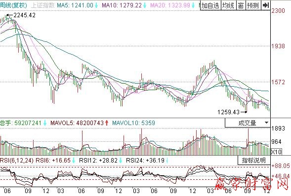 利用周线和月线的RSI进行预测是非常重要而有意义的:当你用日线进行行情性质分析的时候,由于波动频繁而敏感,很难得出行情性质的确切结论,而用RSI的周线和月线特征,我们可以准确把握行情的中长期性质,这样,我们可以以此为基础进行行情的中期和短期预测,提高预测的准确性。
