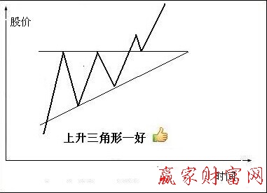 前面两种形态都是底部的形态,能操作固然好。还有一些图形时出现在上升途中,在股价有了一波拉升后出现调整后再继续拉升。短线投资者可以在股票整理的时候持币观望。在多种的盘整走势中,上升三角形是一种比较常见的,同时也是最标准的整理形式。在股价有了一波拉升后,在阻力位置受到压力回踩,也有可能是之前这位置的套牢盘形成的抛压。在回踩的的时候成交量萎缩,这说明抛压不是很着急,到达阻力位才会形成抛压。在这一阶段,股价回踩后下方支撑站稳就开始再一次的上涨。上涨到压力位的时候,同样遇到阻力,但是相比第一次,这时候的压力要小,可以观察成交量。在之后股价自然上涨突破了压力,吃掉了原来的卖盘。在上升三角行没有形成之前,也是没有突破压力之前,股票方向是未知的,如果不是向上突破,这就成为了头部形态。所以,在操作这一形态的时候不能轻易买入,一定要等形态完成。很多投资者都在等待它的完成,形成上涨的走势是自然而然的。
