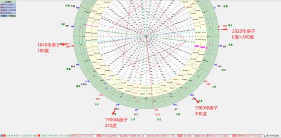 赢家江恩轮中轮,我们以2020年庚子年为0度,一年一度往前推看历史发生了什么,60年一个花甲。【江恩轮与易经的渊源】