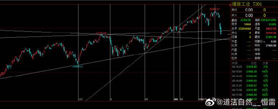 2020年2月12日道琼斯指数历史最高点29568.57到3月23日下跌至18218.65在短短的27个交易日内下跌了11349.82。我的微博里有具体的分析记录。