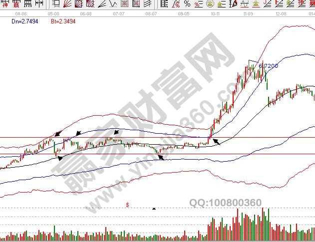 画上涨趋势线,第二个低点较第一个要高,这条趋势趋势线可以视为支撑,在其上则是表示股价还在上涨,如果跌破则是表示趋势出现变化,有走弱的情况。不过在趋势走势角度较为平缓的趋势中对于股价趋势变化较为滞后,通常有一定的下跌之后才会跌破。相对于来说下跌趋势线的应用在股市中较为广泛,只要使用的高点较为重要,那么在强势突破下降趋势之后后市出现反弹甚至反转的情况较为普遍,当然以高点的数量越多越好。在横盘走势中时间震荡的越久,则厚实的突破有效性越大。