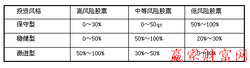 保守型、激进型和稳健型投资资金分布结构表: