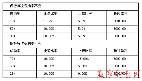 在成功率为25010(即4次投资中只有1次成功)的情况下,10次交易里不允许有亏损出现,每次必须盈利10%以上,才可以达到年获利5000元的目标。