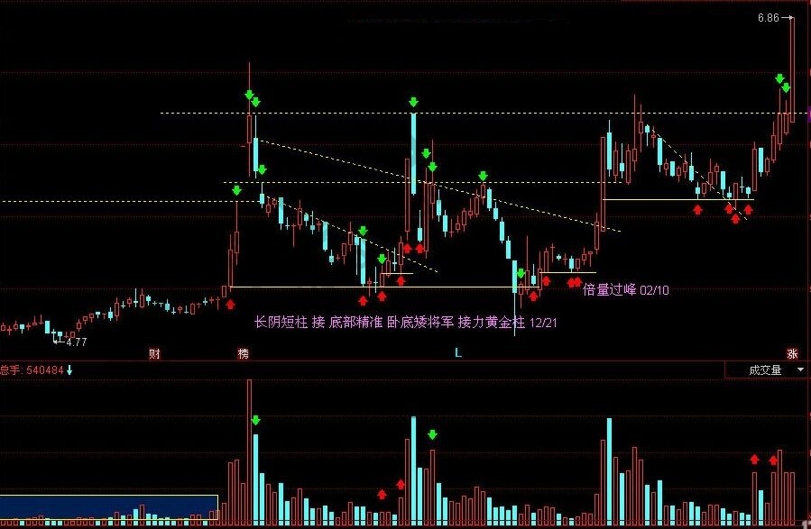 在这整个震荡平台的几个中枢中,凹剑峰位置缩量到的了最低量企稳,所以股价财货走出倍量长阳短柱再起,显然是一种前置涨停过左锋的凹口淘金的走势图。