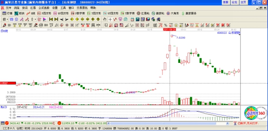 上图是2011年4月份的山东钢铁600022 K线图走势,该股的主力在前期是没有进行吸筹的,在利好出现后突然急拉涨停板进行吸货,在前几个涨停板是吸筹,后几个涨停板则是完成了拉升和出货。这就是典型的一个游资操作的案列。从上面的案例中,你能看出强势游资吸筹特征有哪些?当然部分投资者还是不能够发现,下面笔者总结如下。
