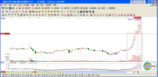 6000113这只股,在2012年四月份走势与上面的案例中是一样的,主力在前几个涨停板吸货,最终该股涨停到高位后却直接跌。
