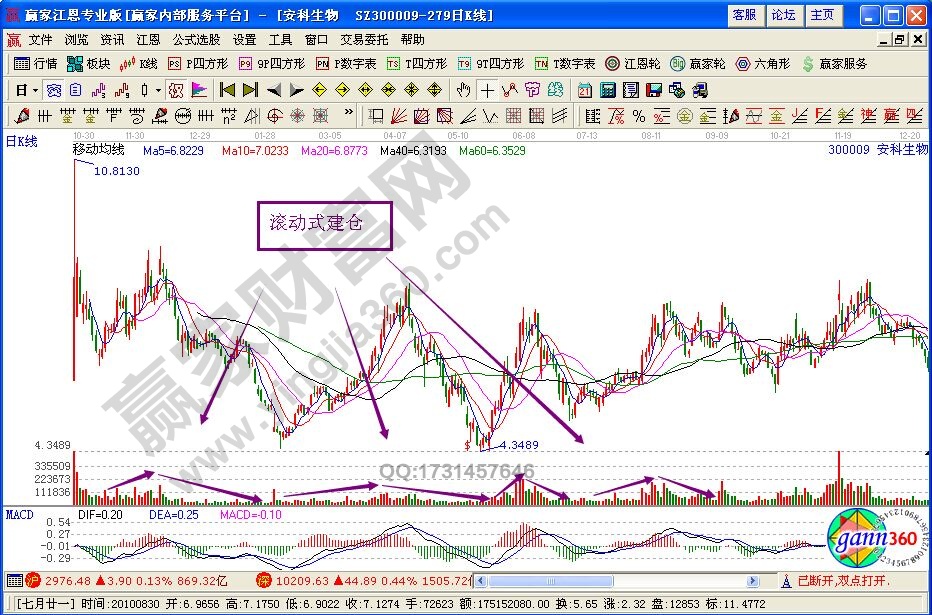 作为一个操盘手来说,在第一时间段如果呈现出强势整理的特征,尅在5日均线附近进行低吸,如果午盘后上传均价线,稳健上行,可以选择在盘中选择低点进行加仓,这就是盘中滚动式建仓。